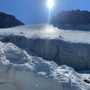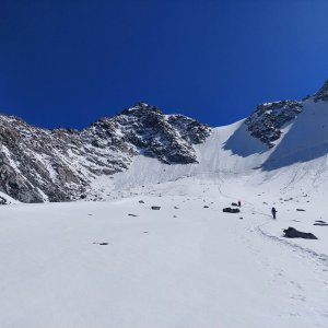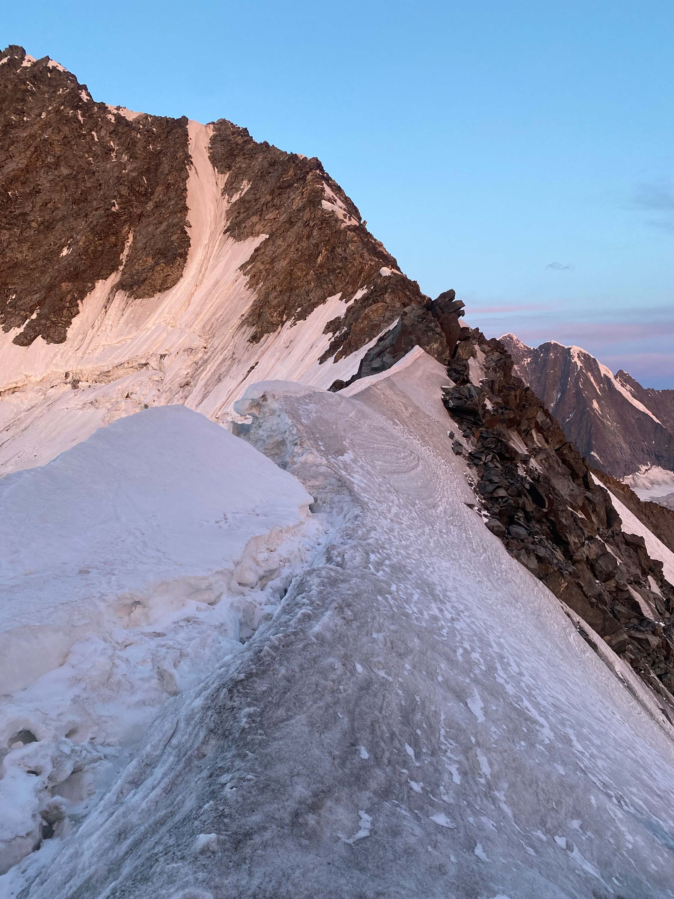 Первая часть маршрута до Томских стоянок 🏕 по сути представляет собой классический туристический поход в котором не требуется применение и использование альпинистского снаряжения. Начинается поход на автомобиле повышенной проходимости ГАЗ-66 и дальше проходит вдоль русла реки Аккем вплоть до Аккемского озера. На озере мы нагрузимся по полной и пойдем уже вверх и понесем все на себе и еду и снаряжение, которые раньше приехали на конях. После часовни мы подойдем к Аккемскому леднику и для упрощения движения выйдем непосредственно на него. Ледник это другая планета, где по его поверхности текут реки, рассыпаны разнообразные камни и веет холодом! Несмотря на то, что прохождение Аккемского ледника происходит без применения кошек, все равно нужно быть предельно внимательным особенно в месте, где необходимо подняться по осыпному борту ледника на его верх уже практически рядом с Томскими стоянками. Когда мы придем на Томские стоянки, то будем ждать хорошей погоды для штурма вершины, а чтобы не терять времени даром, организуем тренировочные дни и вдоволь нагуляемся по леднику Арбуз для получения высотной акклиматизации. И вот час настал, примерно в 2 часа ночи мы выйдем на штурм, чтобы преодолеть перевал Делоне в темноте, но встретить рассвет 🌄 на вершине Томских студентов! После вершины Томских студентов, мы спустимся вниз на вершину перевала Делоне, организуем здесь перекус, оценим свое состояние и погоду и выдвинемся до промежуточной вершины между перевалом и пиком Делоне. Маршрут гребневой и если будет напряженно то мы встанем в связку, которую отработали раньше на леднике Арбуз во время дневок. Как дойдем до промежуточной вершины, то смотря по самочувствию и настроению и погоде, потусуемся на вершине и пойдем в обратную сторону. Добравшись до базового лагеря на Томских стоянках отопьемся, наедимся и завалимся спать, а на следующий день выдвинемся вниз на Аккемское озеро, где еще раз переночуем и по желанию сходим в треккинг в долину Ярлу или отдохнем в лагере. И в оставшиеся два дня вернемся обратно по уже знакомому маршруту в поселок Кучерлу.