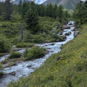 В следующий день наша задача преодолеть расстояние до кромки леса на Каракабакских озерах, где мы и остановимся на ночевку. По пути мы пройдем через стойбища коренного населения и возможно отведаем знаменитых алтайских лепешек, которые очень вкусно принимать в пищу вместе с чаем ☕ заваренным на листьях горной смородины собранной нами по пути. Слева от нас все время будут протекать реки, сначала Мажой, а затем и река Каракабак и таким образом с рекой Каракабак мы познакомимся от её устья до истока - ледника спускающегося с цирка гор вершинами, которых являются пик Героев Алтая (3'511 метров), пик Акчасова (3'655 метров), пик Георгия Жукова (3'490 метров). В дальнейшем у нас будет два дня радиалок, и в день с лучшей погодой мы пойдем на гору Лунтик высотой 2'900 метров (набор высоты 600 метров), которая начинается сразу как выходишь из леса с правой стороны. С этой горы открывается вид на всю реку Каракабак от её истока до устья, это просто потрясающий вид, а с другой стороны мы можем увидеть долину реки Ештыкол куда придём через несколько дней! В другую радиалку мы пойдем до ледника, который спускается с пика Героев Алтая, это очень впечатляюще - летом побывать и потрогать ледники, которым несколько десятков, а может и сотен тысяч лет! В Европе модно пить ледниковую воду альпийских гор, а у нас еще лучше - ледниковая вода алтайских гор непосредственно с ледника - пей на здоровье! ❤️ После того, как закончатся радиальные выходы и мы отоспимся, нам предстоит преодолеть моховое плато и выйти к реке Ештыкол, на которой мы и заночуем практически на перевале на открытой местности. Помимо реки Ештыкол немного подальше здесь также протекает река Шабога, если погода будет жаркая, то накупаемся вволю! На этой стоянке вечером и утром готовить будем только на газу, поскольку тут нет дров, и будем кушать настоящую альпинистскую еду, ту самую какую альпинисты берут на свои восхождения! В последний день похода мы преодолеем Оройский перевал, где возможно опять поедим алтайских лепешек и возможно запьем их свежим молоком, а дальше спустимся по ручью Орой к мостику через реку Чуя, где нас заберут автотранспортом и привезут на базу, где мы начали наше путешествие. Стоит заметить, что в начале нашего похода мы переходили реку Чуя по другому мостику, который находится в 14-ти километрах выше по течению и таким образом наш маршрут получился кольцевым, а не радиальным, и нам не нужно возвращаться домой той же дорогой какой и поднимались.