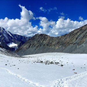 Маршрут идет со стороны Оройского перевала, где мы посмотрим великолепную долину реки Ештыкол, а на самом Шавлинском озере увидим такие горы как Красавица, Сказка и Мечта 🏔💝. Когда преодолеем перевал и встанем на стоянку, то потратим один день на то, что сходим в радиальный выход до ледника Маашей, ведь это один из самых красивейших ледников на Алтае, поскольку он практически не завален камнями и переливается на солнце своими бело-синими бортами! Здесь же мы будем наблюдать такие вершины как Маашей-Баши высотой 4'177 метров - это самая высокая гора Северо-Чуйского хребта, а также Актру (4'044 метров), Карагем-Баши (3'962 метров), Куркурек (3'982 метров) и другие. Часто в долине можно встретить или увидеть альпинистов, которые делают попытку взойти на гору Маашей, поскольку это действительно зачетная гора, на которую не существует простых восхождений, и самый простой маршрут классифицирован как 4а.